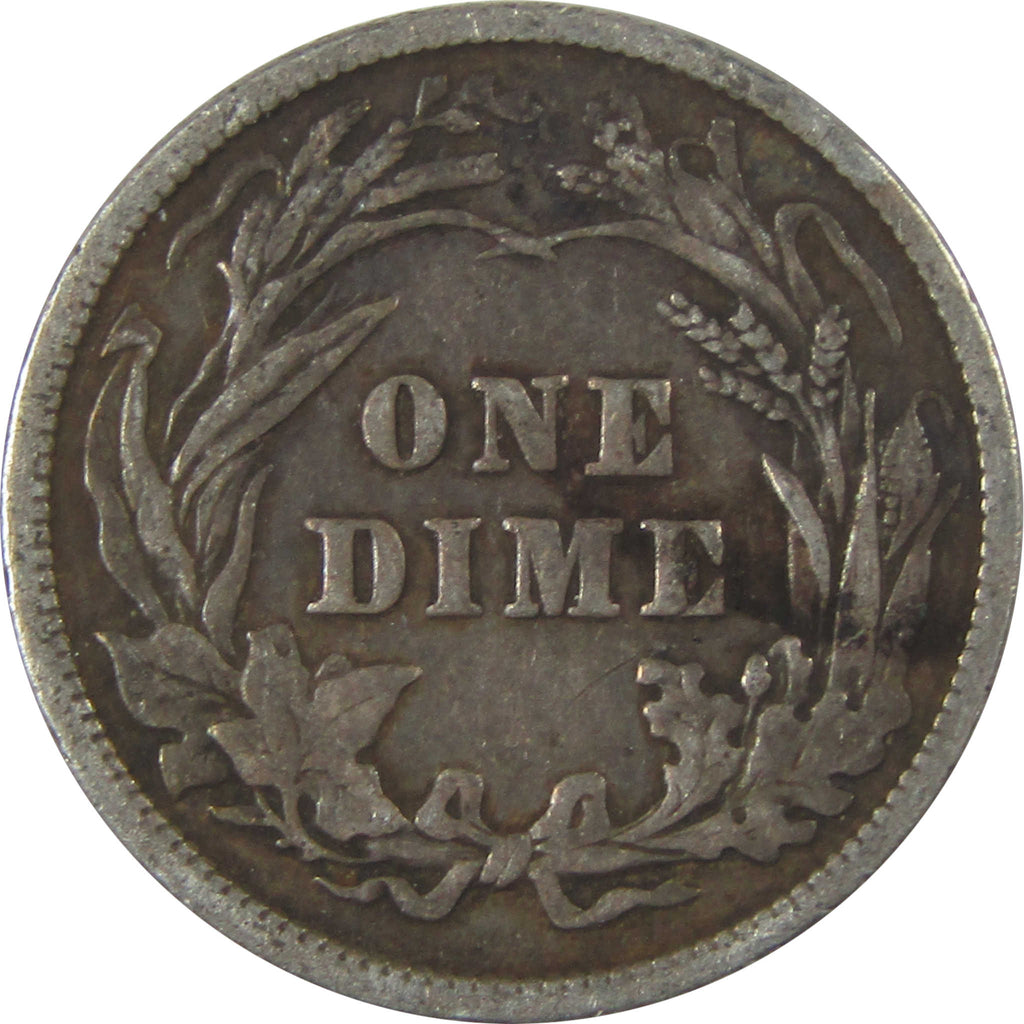 Known as the Barber dime after its designer, this classic Liberty Head dime was struck in 90% silver. Its obverse depicts Liberty facing right wearing a Phrygian cap and laurel wreath, while the reverse shows a wreath and the denomination ONE DIME.