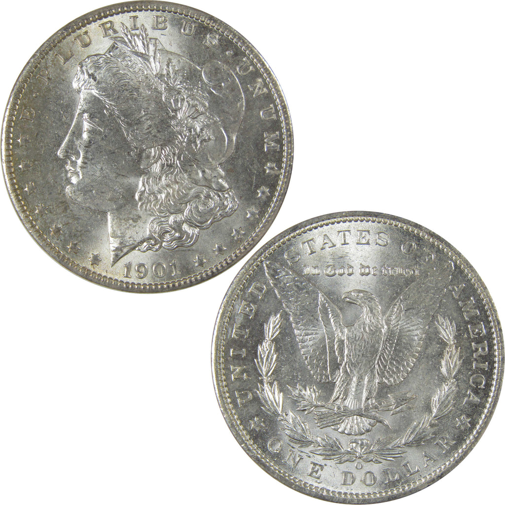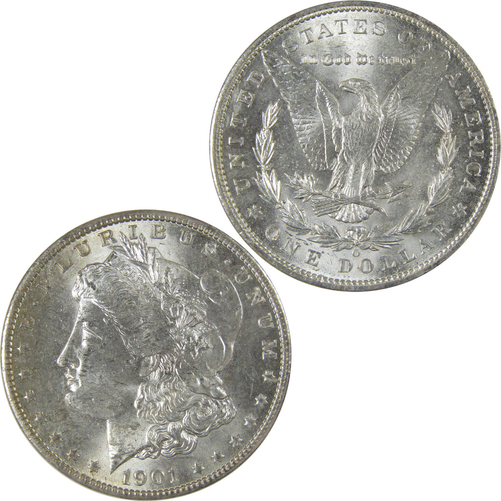 A genuine 1901 O Morgan Silver Dollar Coin, in Uncirculated Mint State Condition. Contains 90% Silver