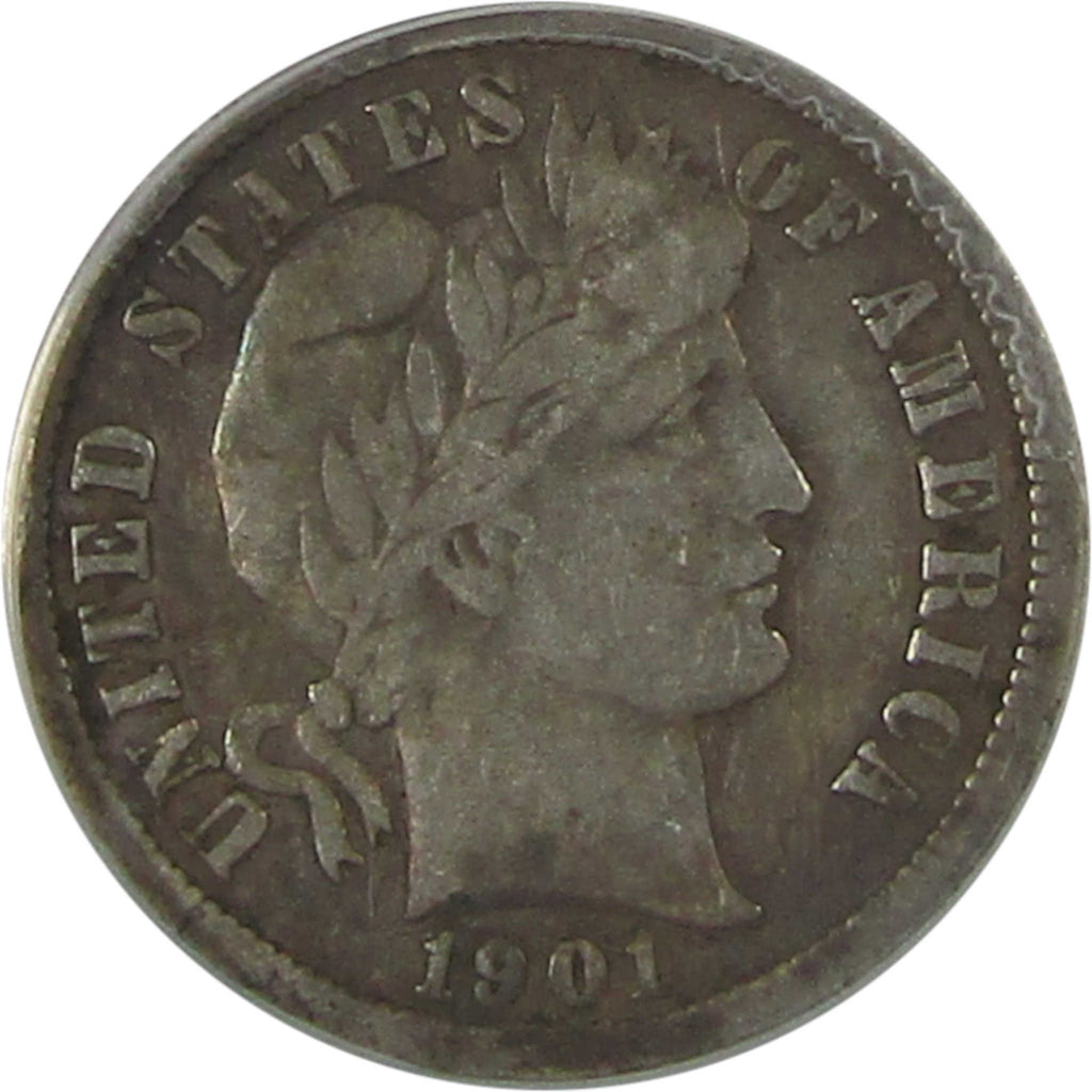 A genuine 1901 S Barber Silver Dime Coin, graded and certified F 15 by ANACS. Contains 90% Silver