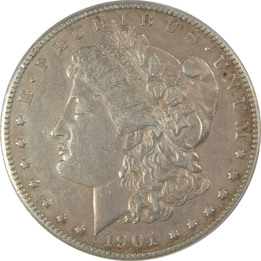 A genuine 1901 S Morgan Silver Dollar Coin, graded and certified AU 50 Details by ANACS. Contains 90% Silver. Cleaned