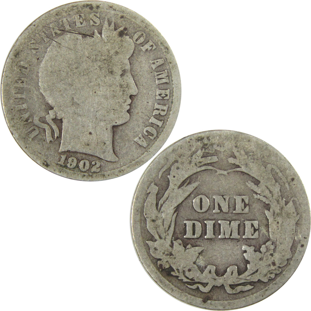 1902 Barber Silver Dime AG About Good 10c Coin Collectible SKU:CP721