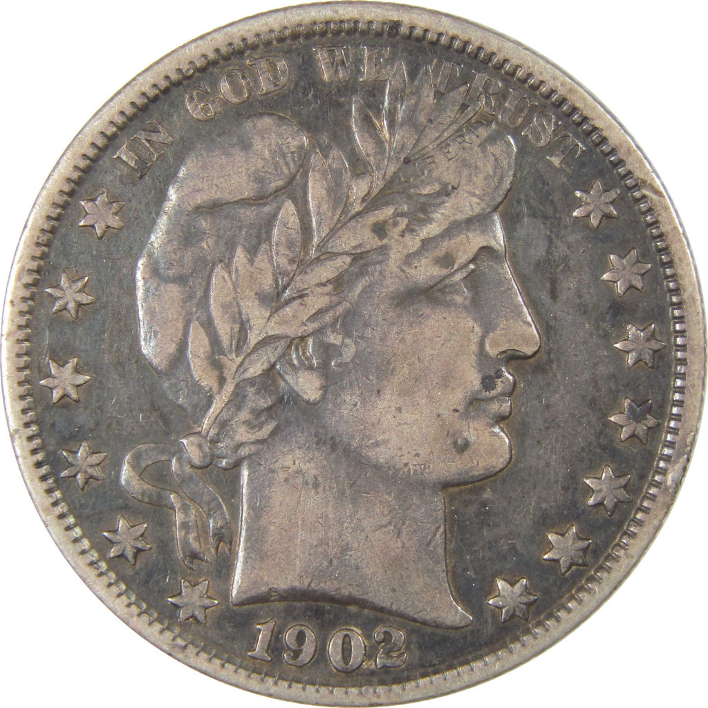A genuine 1902 Barber Silver Half Dollar Coin, in VF Very Fine Condition. Contains 90% Silver