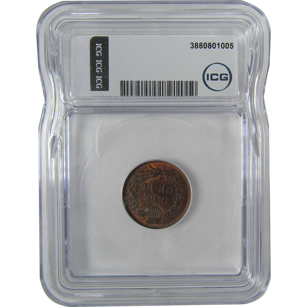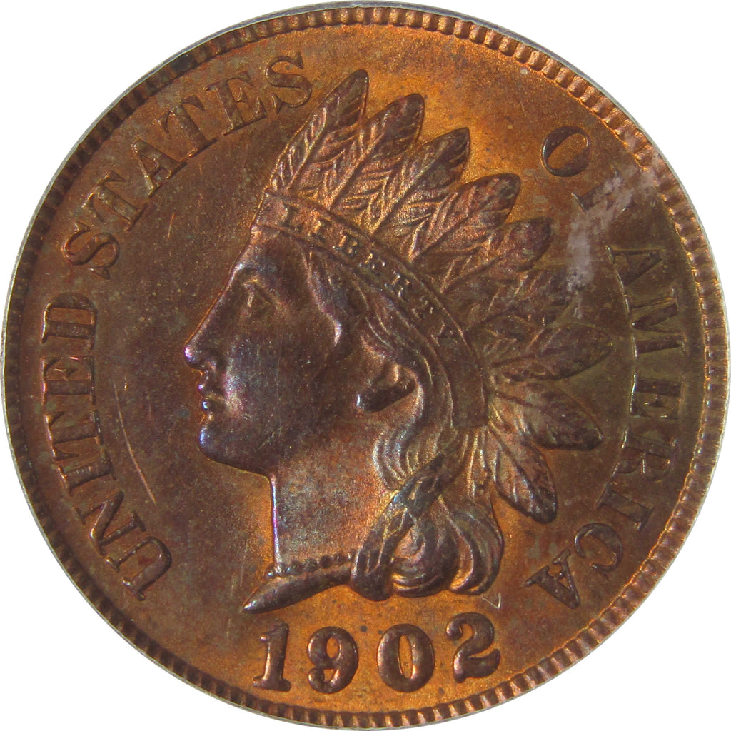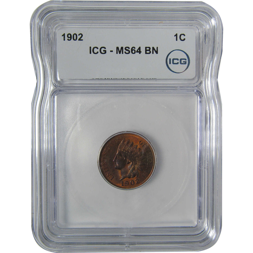 A genuine 1902 Indian Head Cent Penny Coin, graded and certified MS 64 BN by ICG