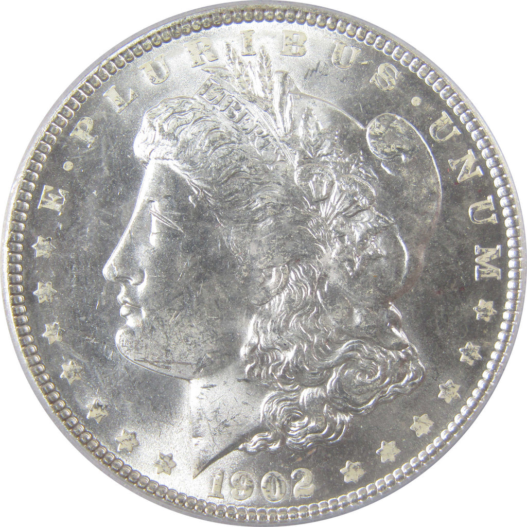 A genuine 1902 Morgan Silver Dollar Coin, graded and certified MS 64 by PCGS. Contains 90% Silver