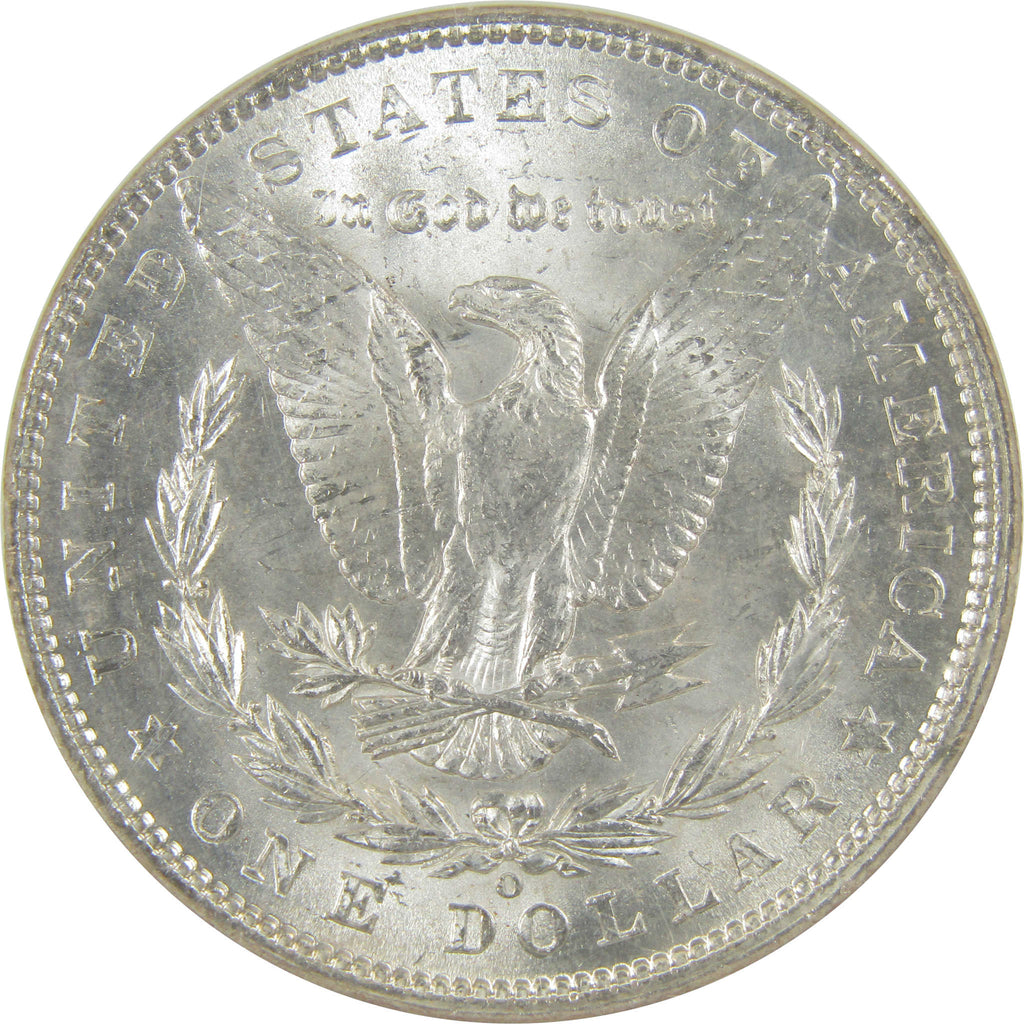 This large 90% silver Morgan dollar bears George T. Morgan's classic depiction of Liberty facing left in a Phrygian cap and a spray of leaves held by a ribbon inscribed LIBERTY. The reverse features an eagle clutching a branch and three arrows.