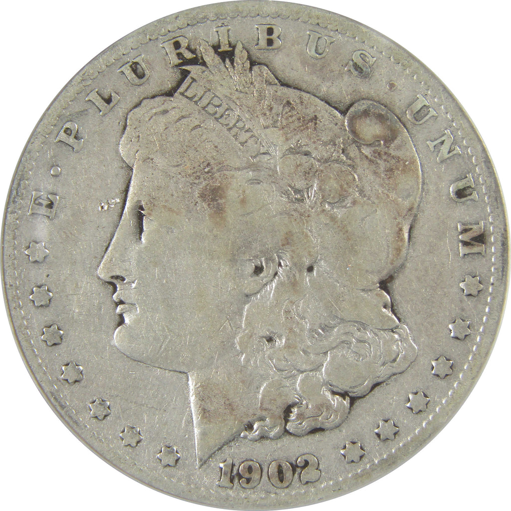 A genuine 1902 S Morgan Silver Dollar Coin, graded and certified VG 8 Details by ANACS. Contains 90% Silver. Cleaned