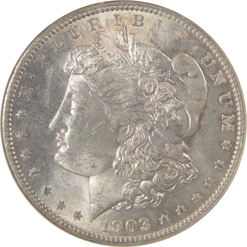 A genuine 1903 O Morgan Silver Dollar Coin, graded and certified MS 63 by NGC. Contains 90% Silver