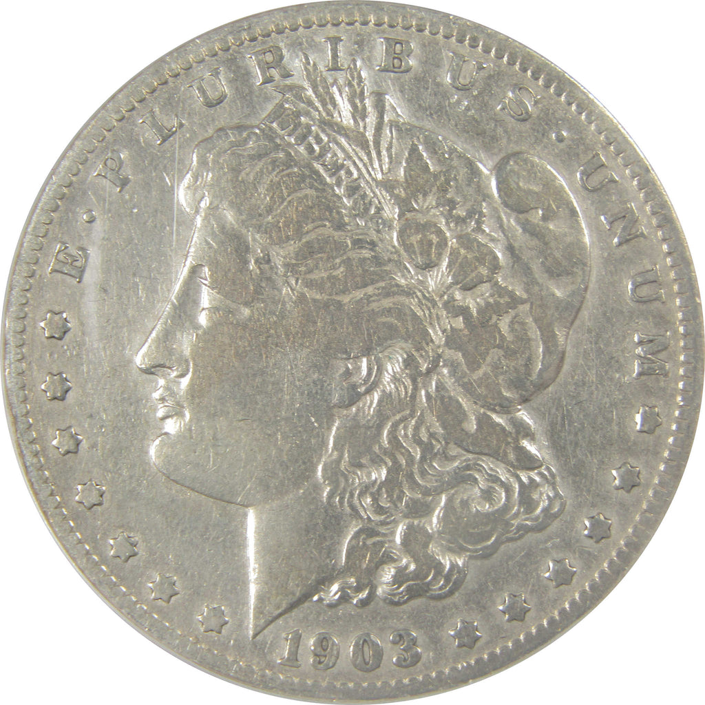 A genuine 1903 S Morgan Silver Dollar Coin, graded and certified F 12 Details by ANACS. Contains 90% Silver. Cleaned