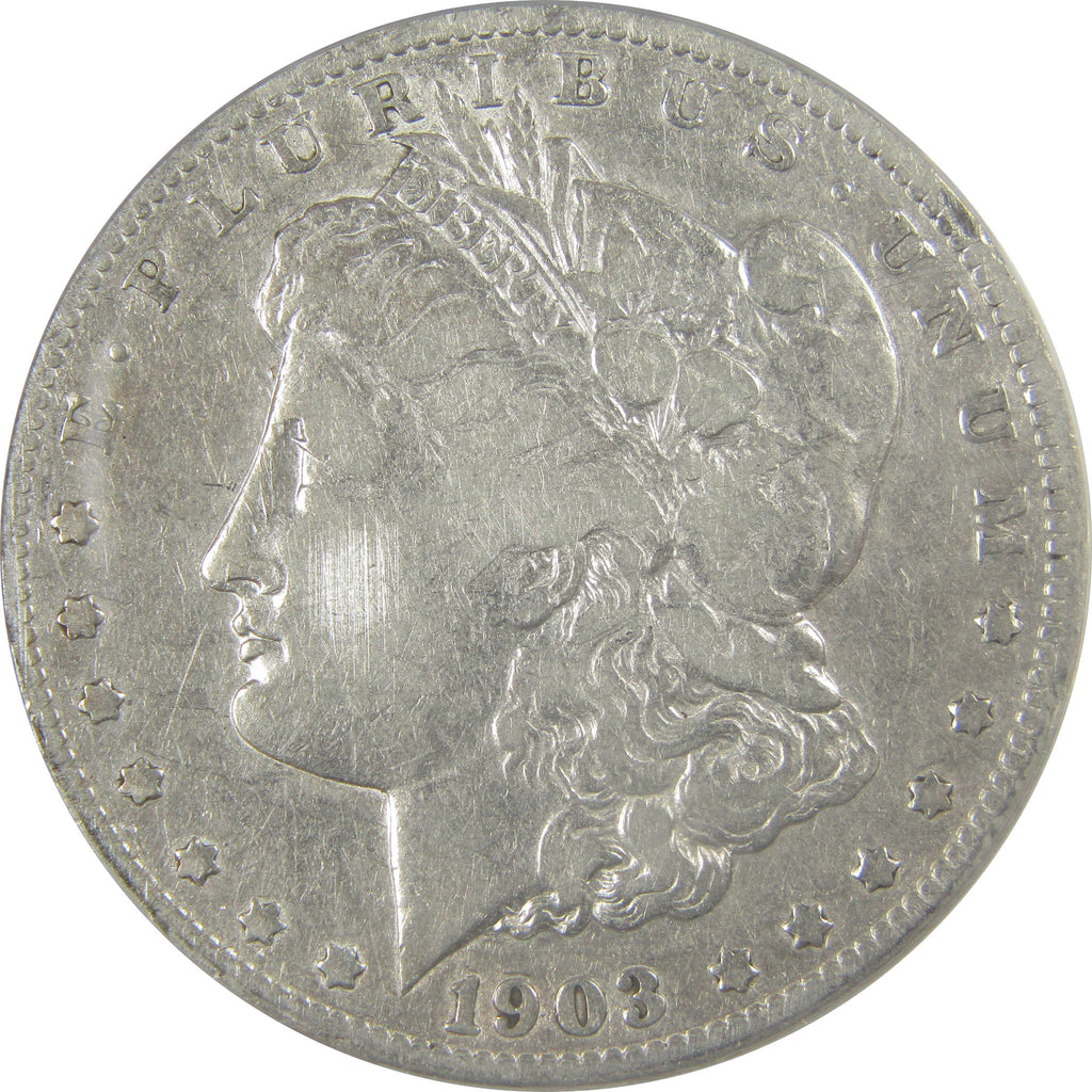 A genuine 1903 S Morgan Silver Dollar Coin, graded and certified F 12 Details by ANACS. Contains 90% Silver. Cleaned