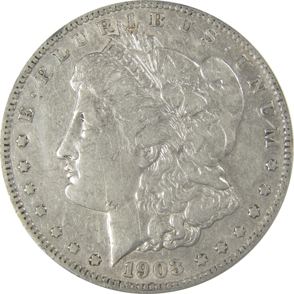 A genuine 1903 S Morgan Silver Dollar Coin, graded and certified VF 30 Details by ANACS. Contains 90% Silver. Scratched, Cleaned