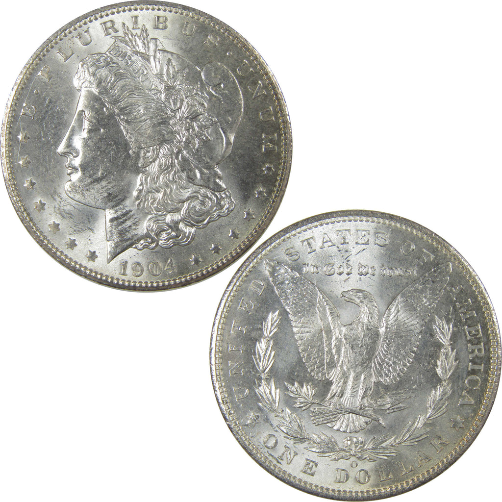 A genuine 1904 O Morgan Silver Dollar Coin, in Uncirculated Mint State Condition. Contains 90% Silver