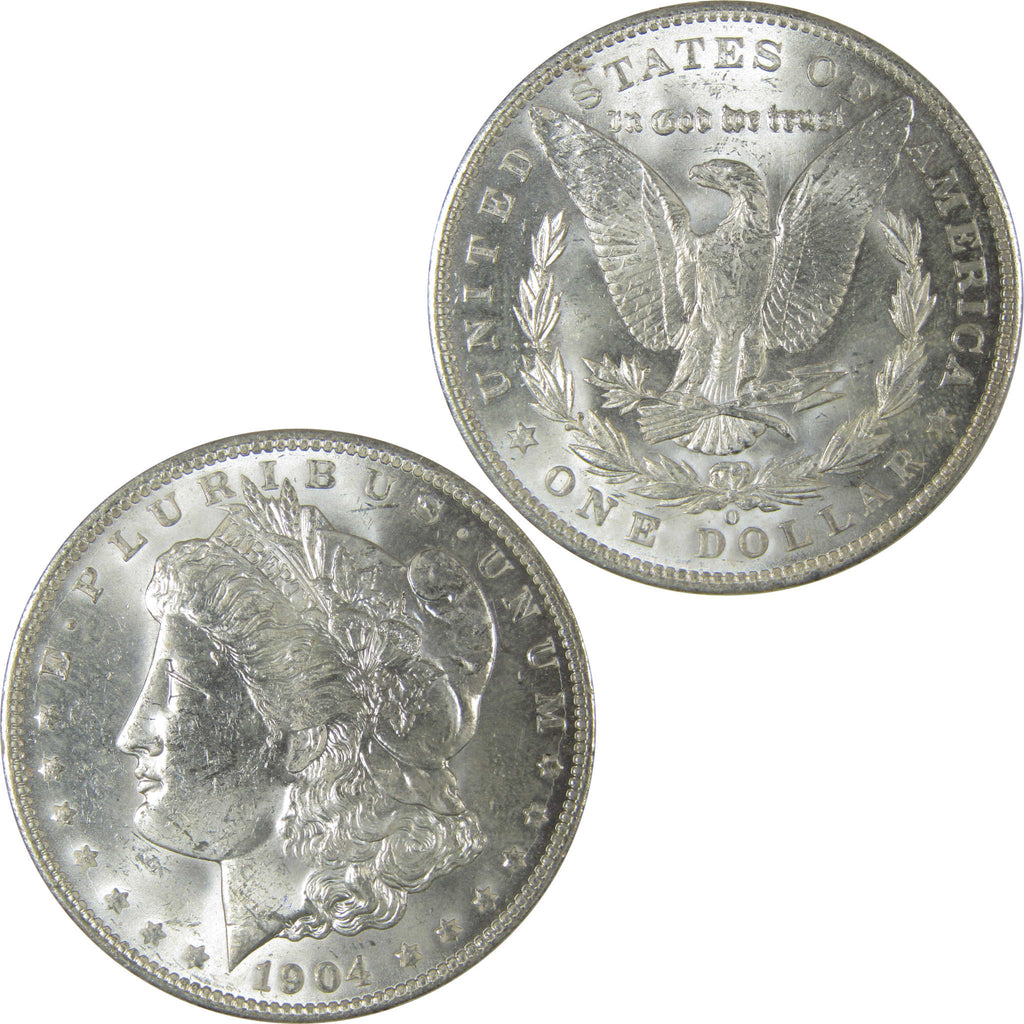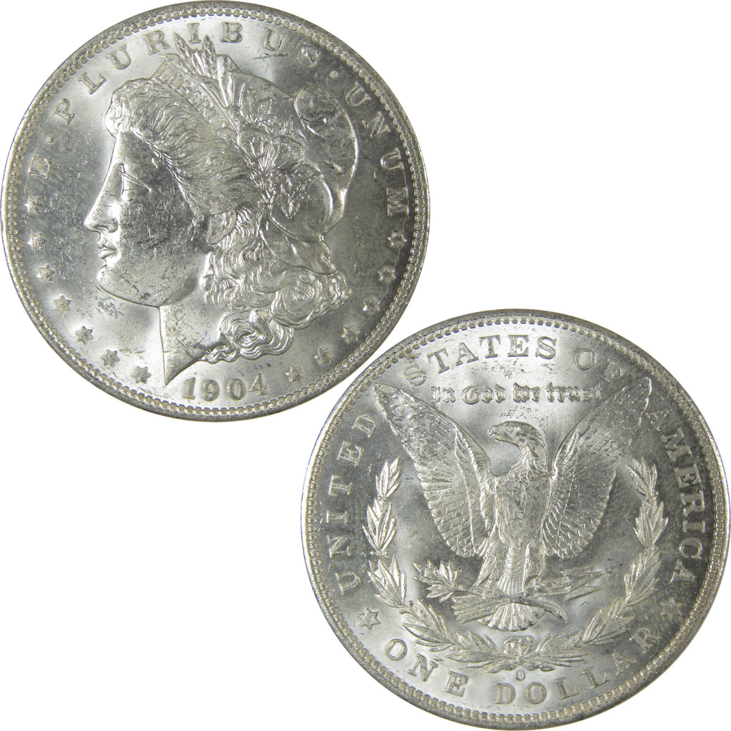 A genuine 1904 O Morgan Silver Dollar Coin, in Uncirculated Mint State Condition. Contains 90% Silver