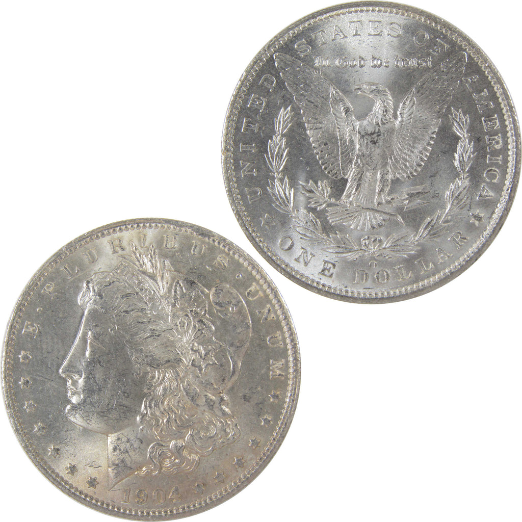 A genuine 1904 O Morgan Silver Dollar Coin, in Uncirculated Mint State Condition. Contains 90% Silver