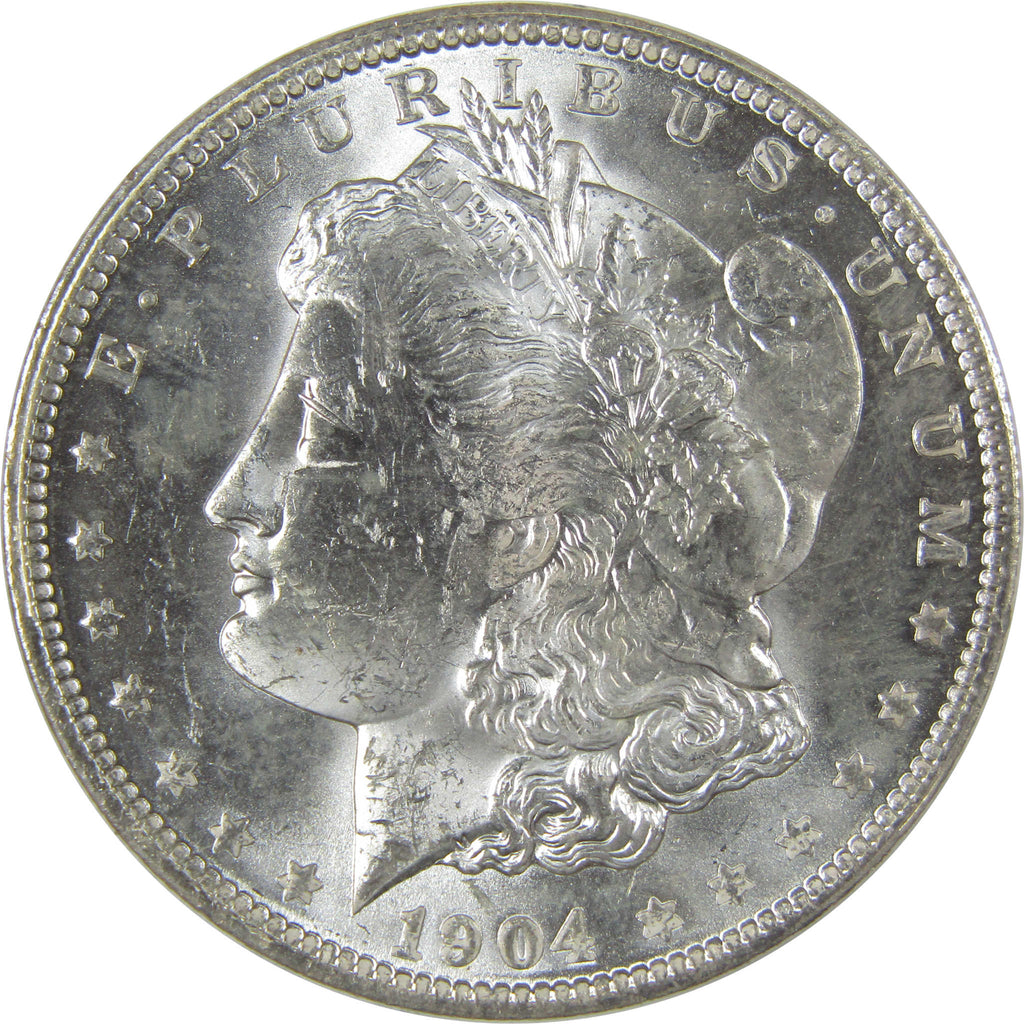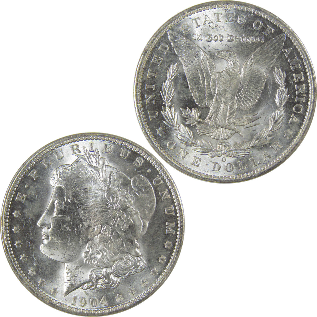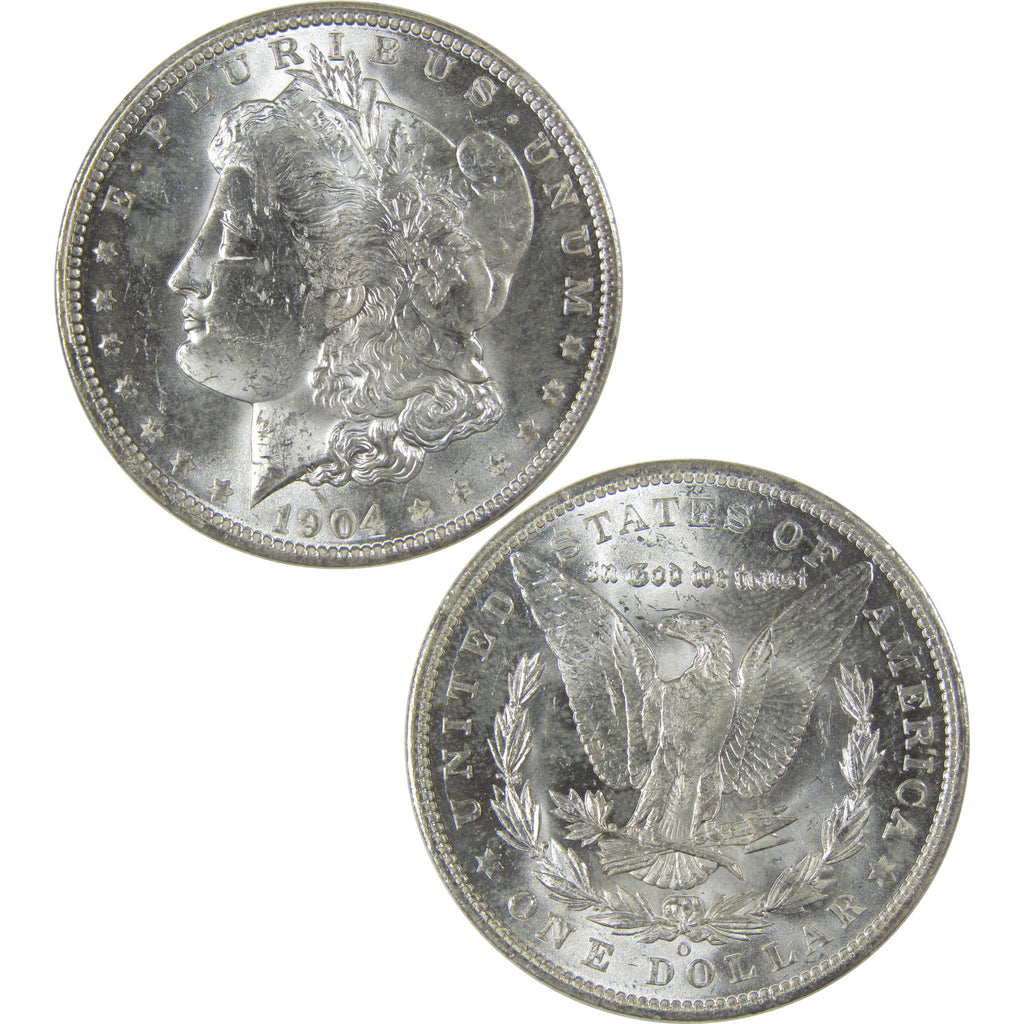 A genuine 1904 O Morgan Silver Dollar Coin, in Uncirculated Mint State Condition. Contains 90% Silver