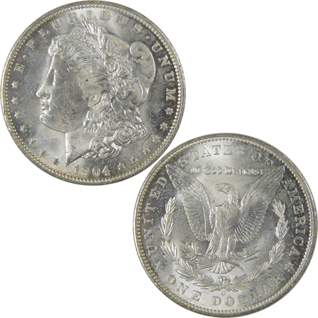 A genuine 1904 O Morgan Silver Dollar Coin, in Uncirculated Mint State Condition. Contains 90% Silver
