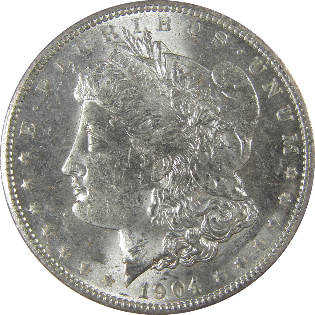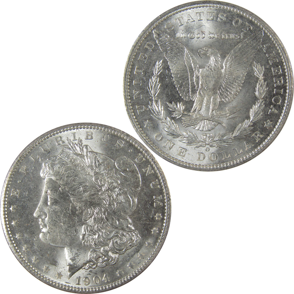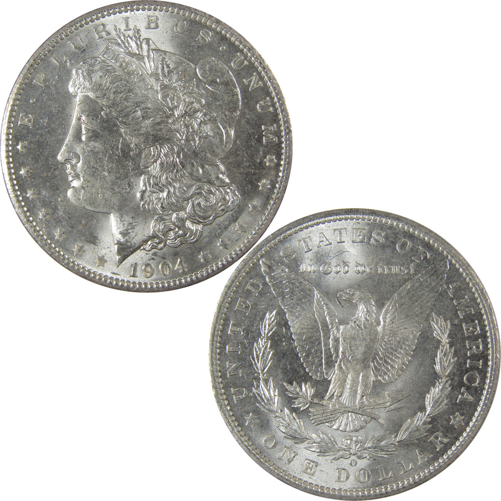 A genuine 1904 O Morgan Silver Dollar Coin, in Uncirculated Mint State Condition. Contains 90% Silver
