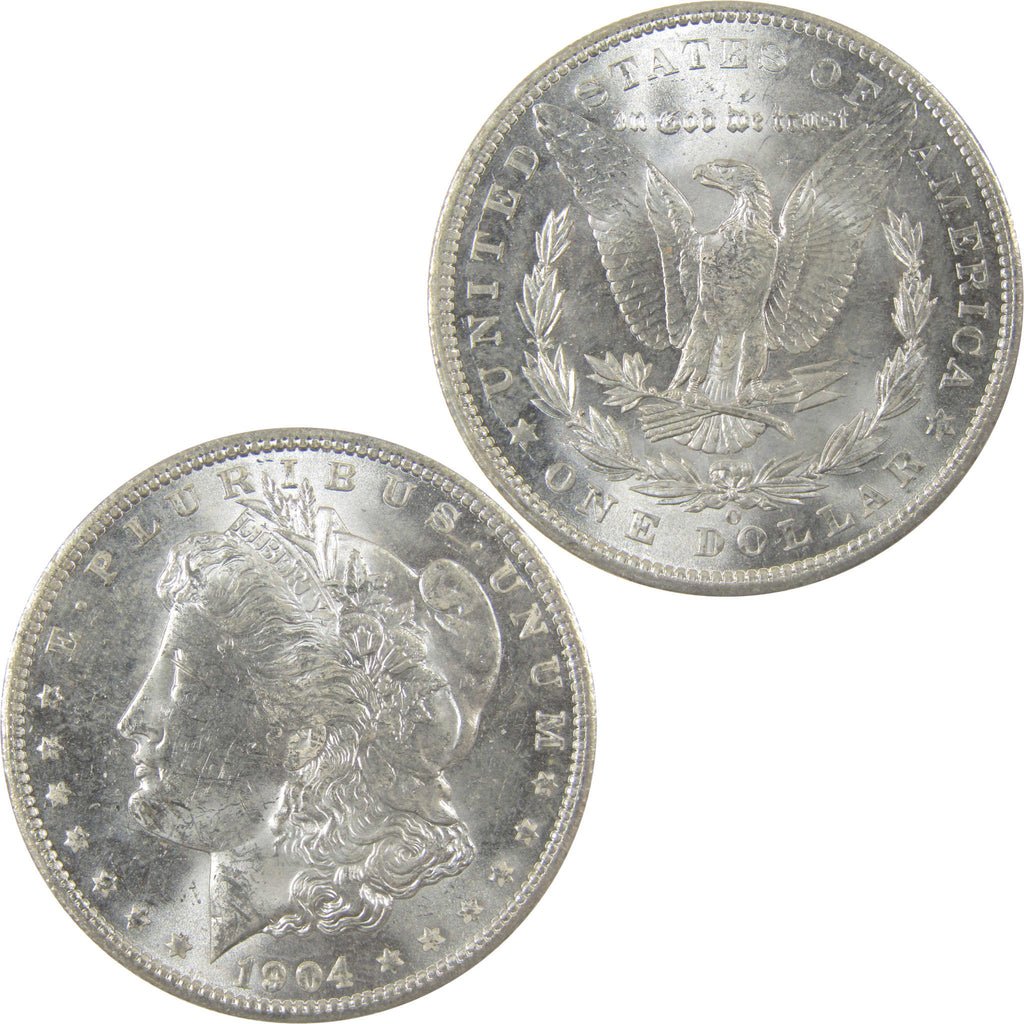 A genuine 1904 O Morgan Silver Dollar Coin, in Uncirculated Mint State Condition. Contains 90% Silver