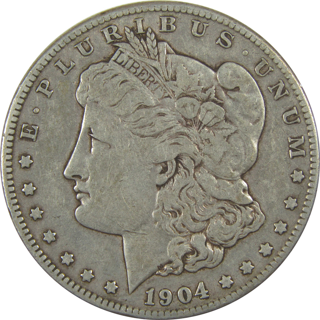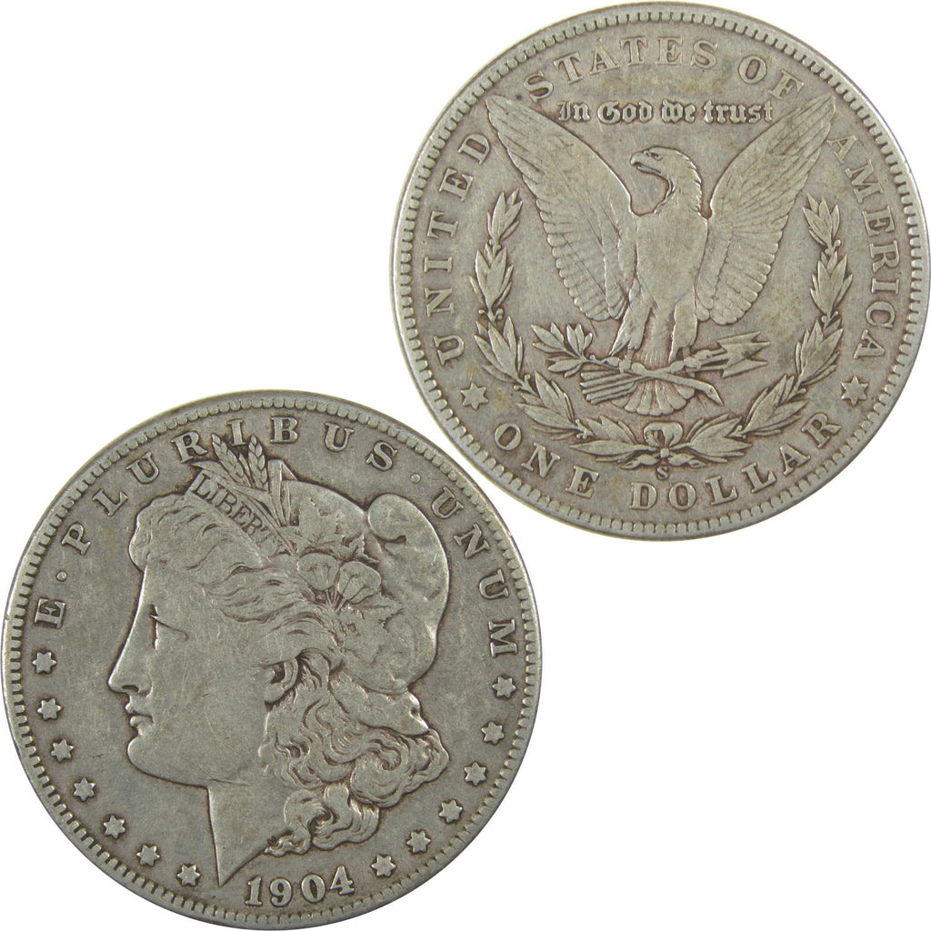 A genuine 1904 S Morgan Silver Dollar Coin, in F Fine Condition. Contains 90% Silver