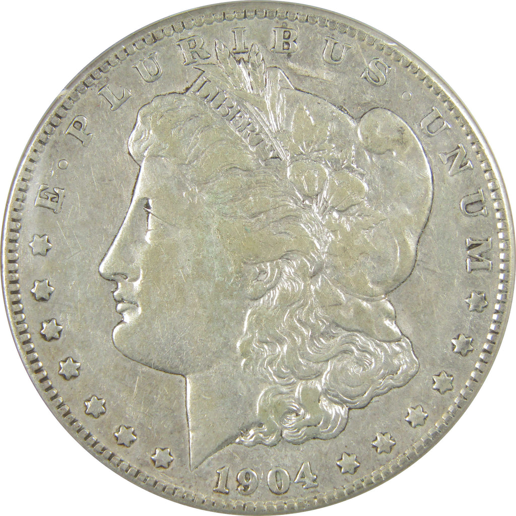 A genuine 1904 S Morgan Silver Dollar Coin, graded and certified VF 30 Details by ANACS. Contains 90% Silver. Cleaned