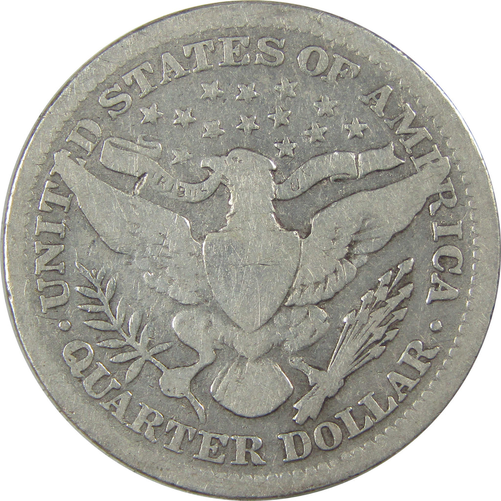 Designed by Charles E. Barber, this 90% silver Liberty Head quarter (or Barber quarter) depicts Liberty wearing a laurel wreath and Phrygian cap with a band inscribed LIBERTY. The reverse bears an adaptation of the Great Seal of the United States.