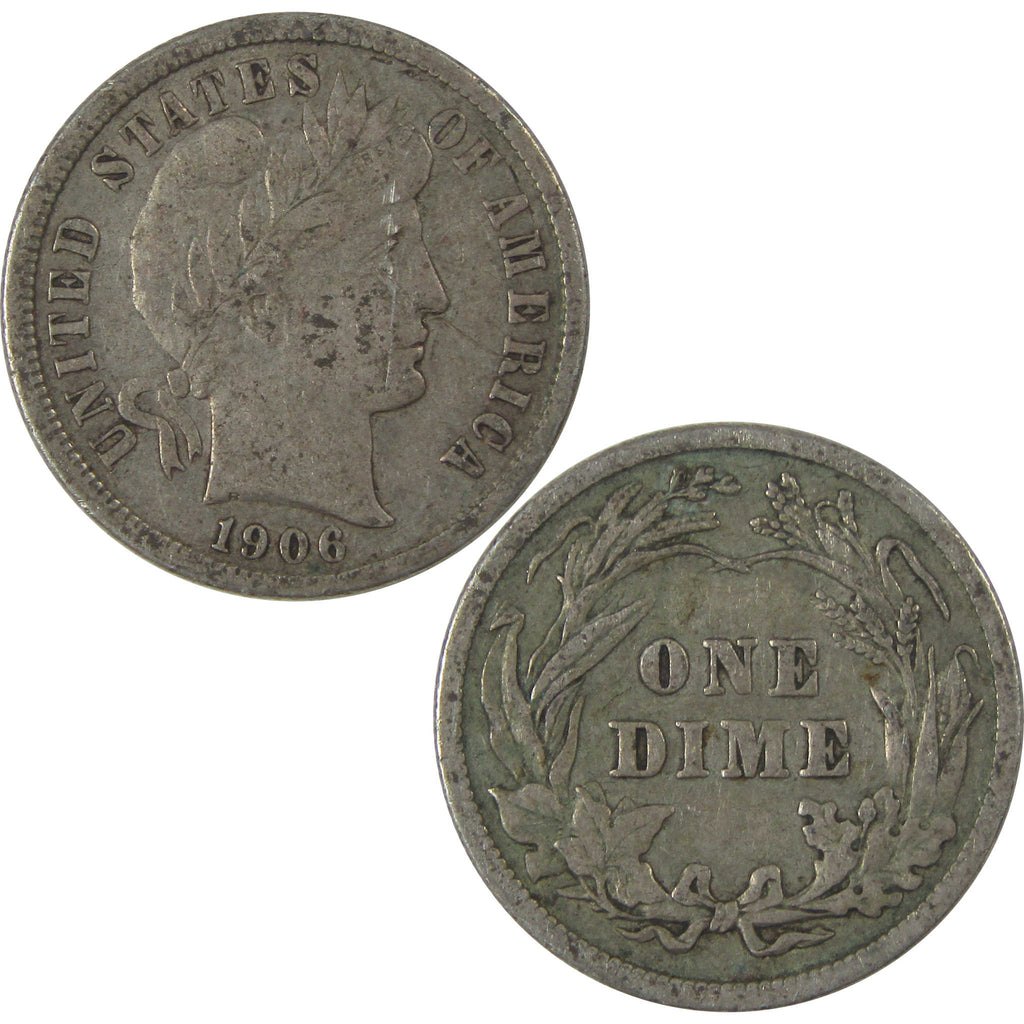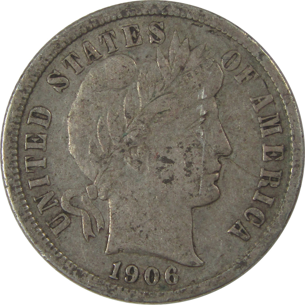 A genuine 1906 Barber Silver Dime Coin, in XF EF Extremely Fine Condition. Contains 90% Silver