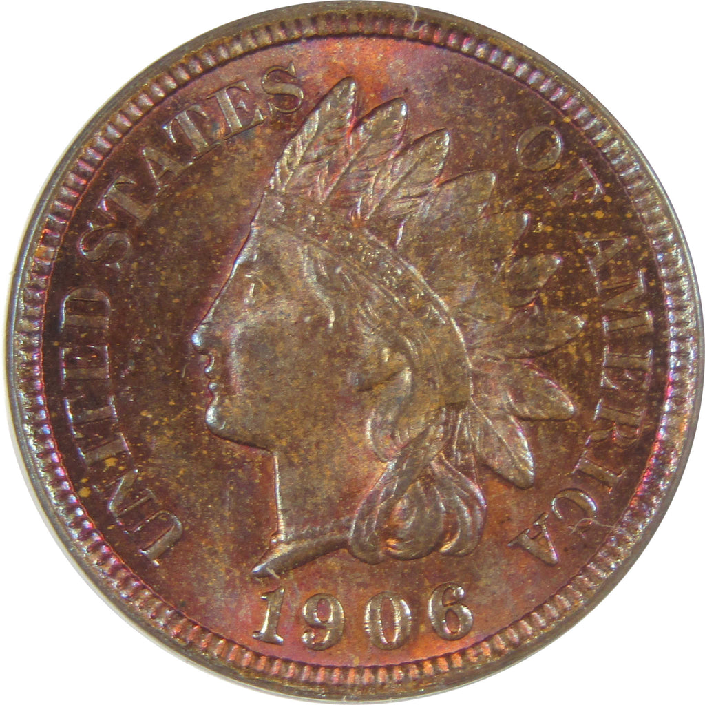 A genuine 1906 Indian Head Cent Penny Coin, graded and certified MS 63 BN by ANACS