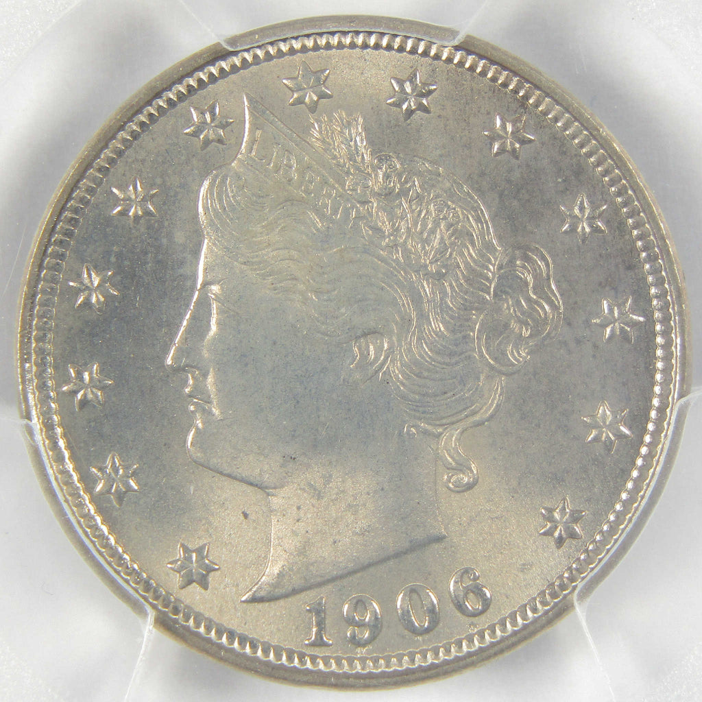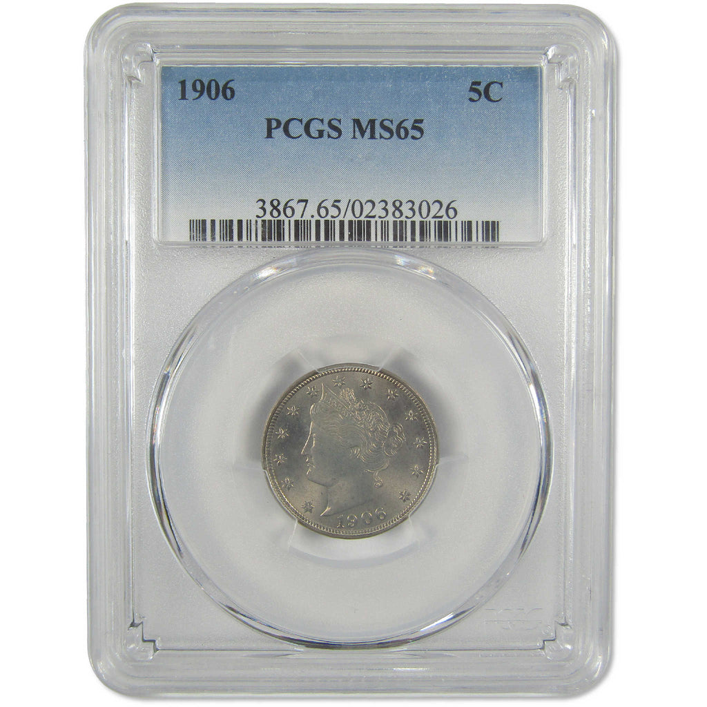 A genuine 1906 Liberty Head V Nickel Coin, graded and certified MS 65 by PCGS