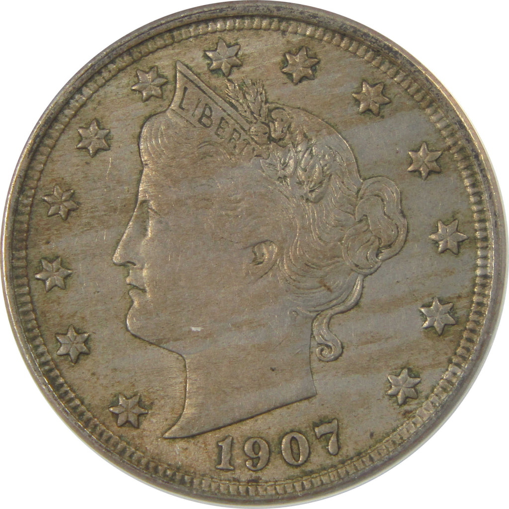 A genuine 1907 Liberty Head V Nickel Coin, graded and certified AU 53 by ANACS