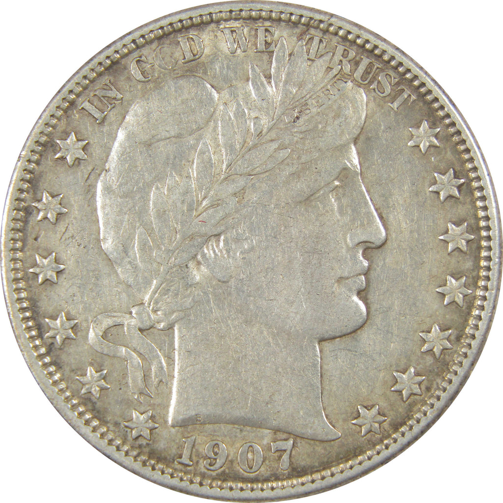 A genuine 1907 O Barber Silver Half Dollar Coin, in AU About Uncirculated Details Condition. Contains 90% Silver. Cleaned