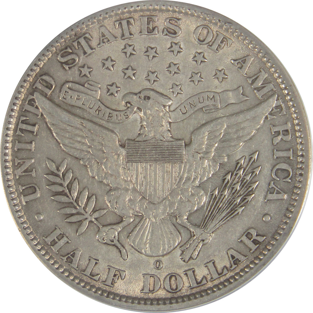 A genuine 1907 O Barber Silver Half Dollar Coin, graded and certified EF 45 by ANACS. Contains 90% Silver