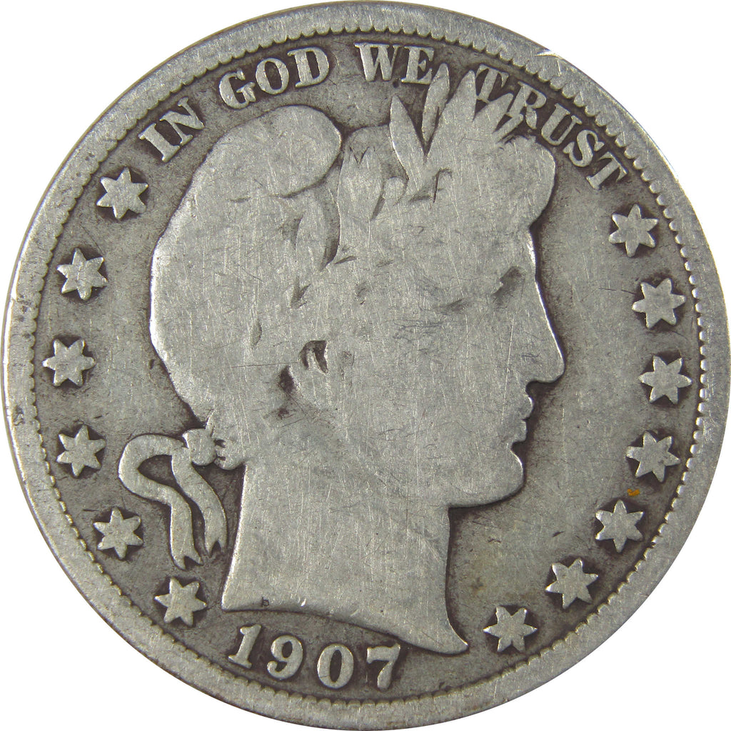 A genuine 1907 S Barber Silver Half Dollar Coin, in VG Very Good Condition. Contains 90% Silver