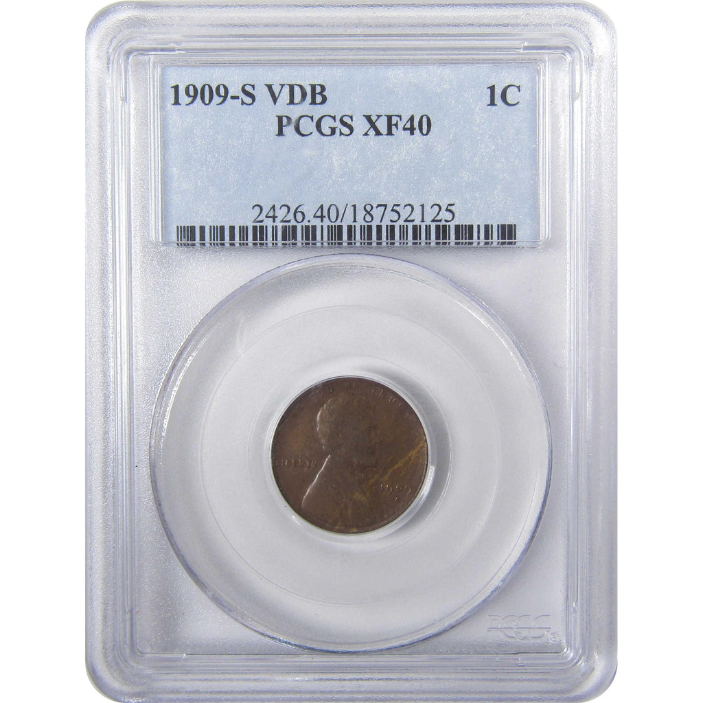 A genuine 1909 S VDB Lincoln Wheat Cent Penny Coin, graded and certified XF 40 by PCGS