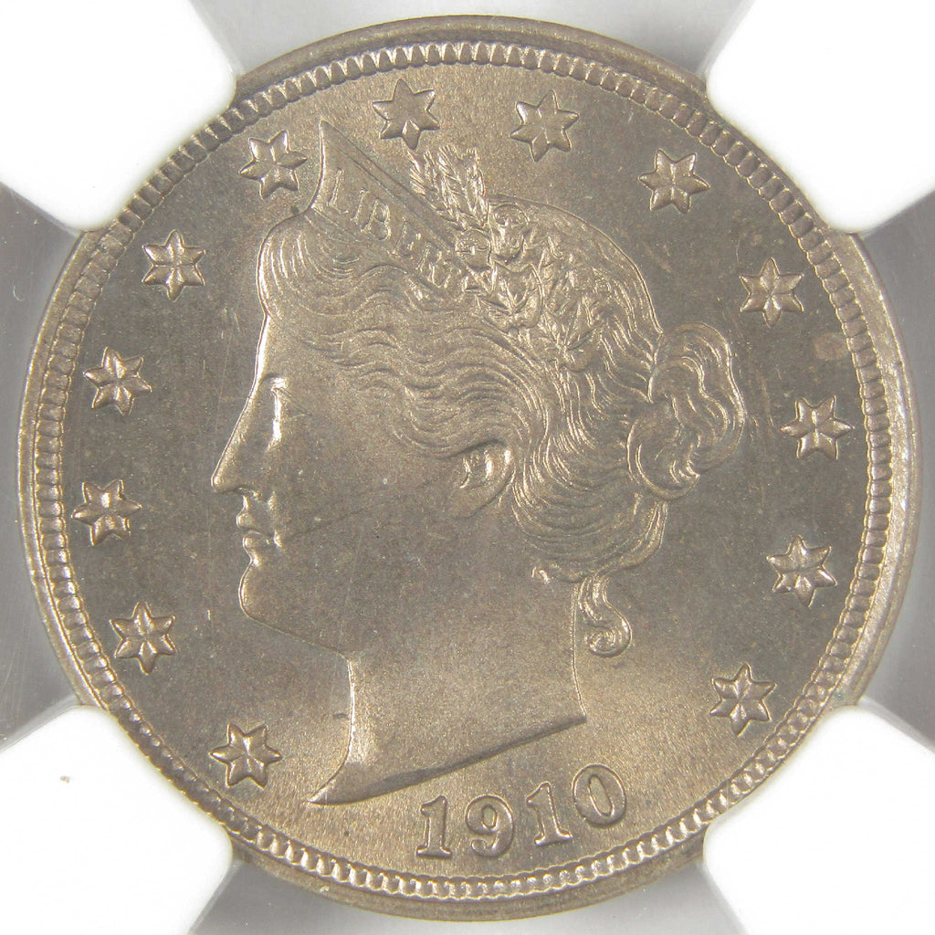 A genuine 1910 Liberty Head V Nickel Coin, graded and certified MS 65 by NGC