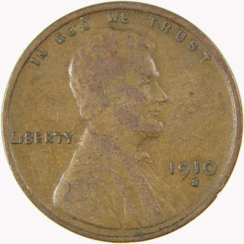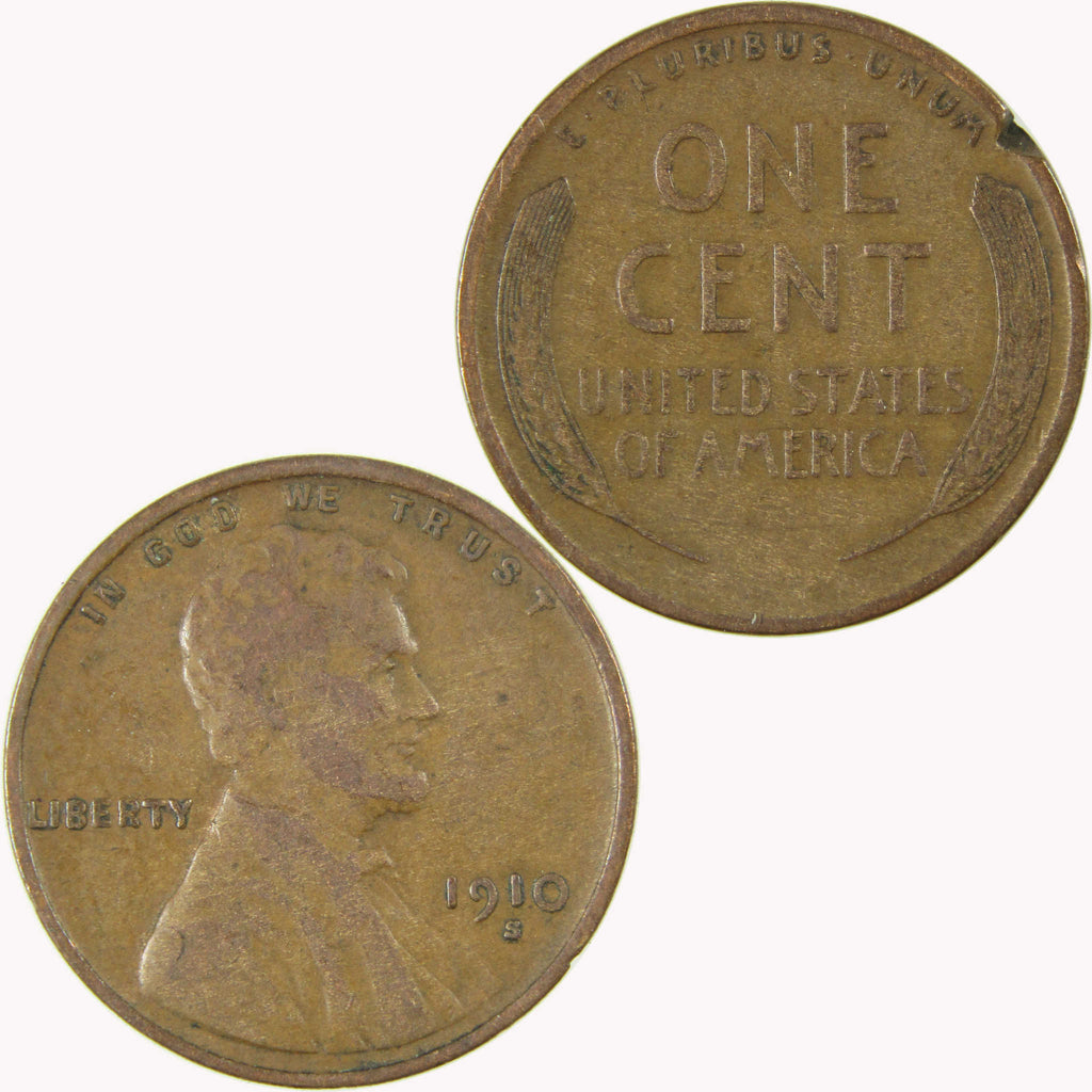 A genuine 1910 S Lincoln Wheat Cent Penny Coin, in VF Very Fine Details Condition. Damaged