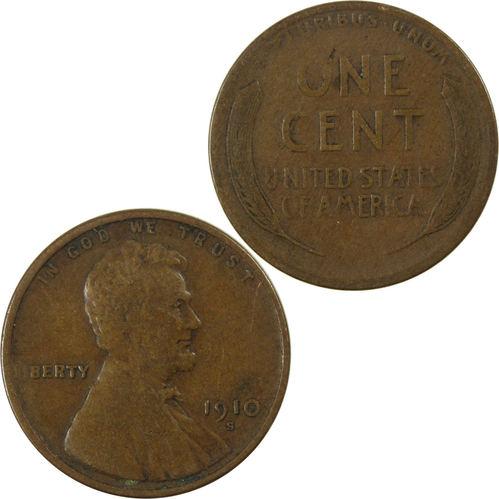 A genuine 1910 S Lincoln Wheat Cent Penny Coin, in VF Very Fine Condition