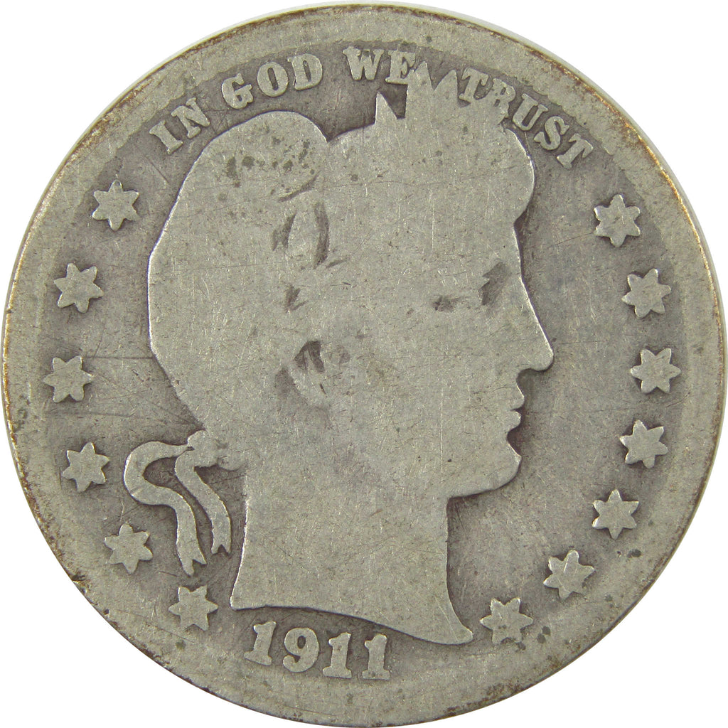 A genuine 1911 D Barber Silver Quarter Coin, in AG About Good Condition. Contains 90% Silver