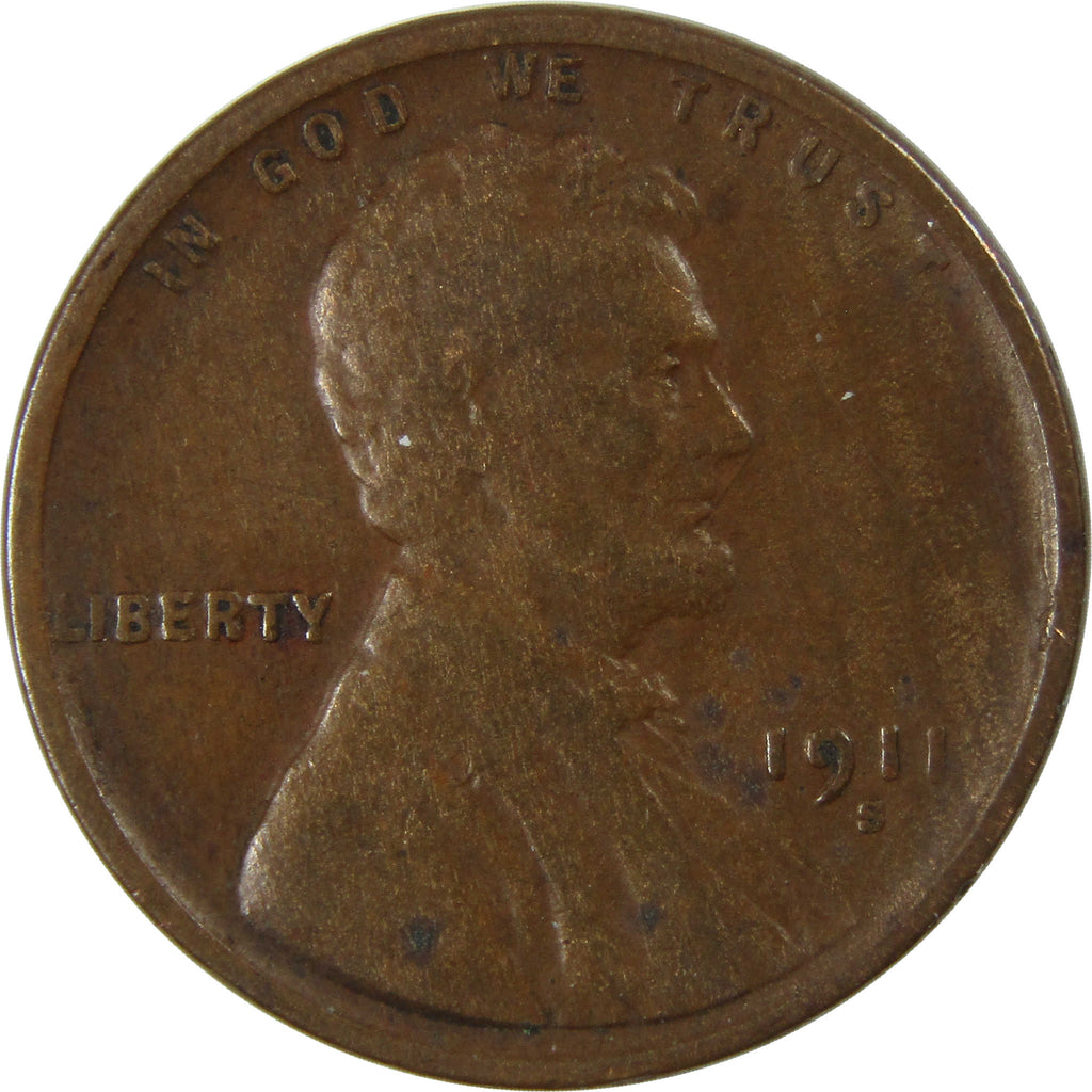 A genuine 1911 S Lincoln Wheat Cent Penny Coin, in F Fine Condition