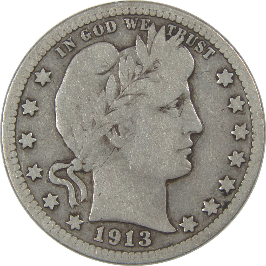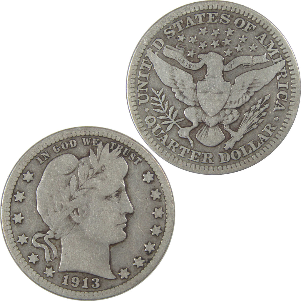 1913 Barber Quarter VG Very Good Silver 25c Coin SKU:I23172