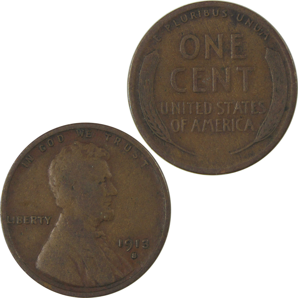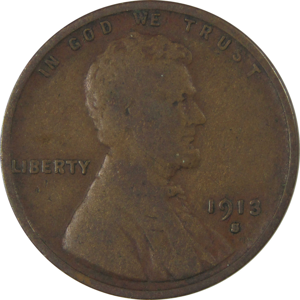A genuine 1913 S Lincoln Wheat Cent Penny Coin, in F Fine Condition