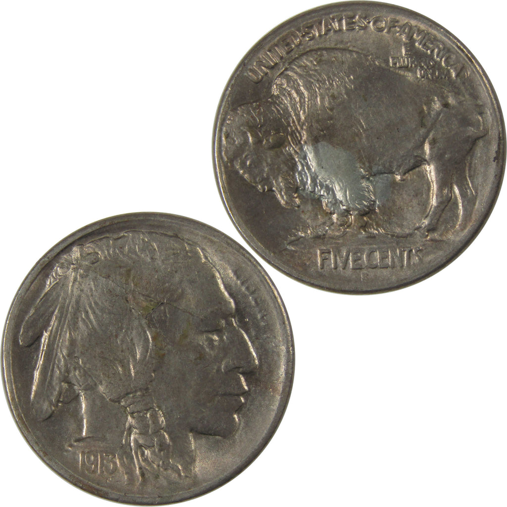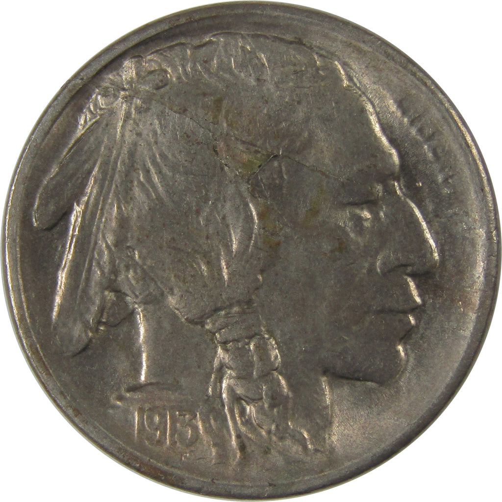 A genuine 1913 S Type 1 Indian Head Buffalo Nickel Coin, in CH AU Choice About Uncirculated Condition. Obverse Lamination Mint Error