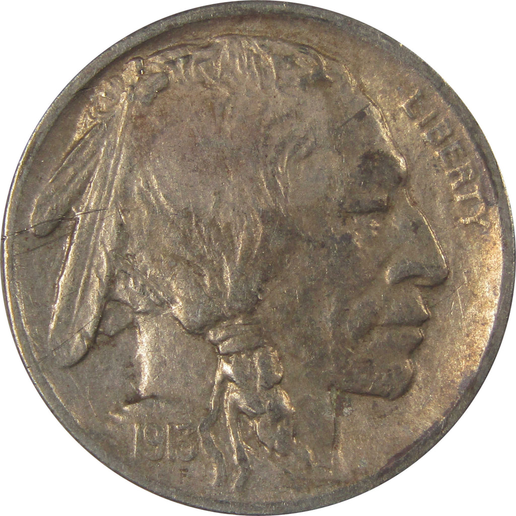 A genuine 1913 S Type 1 Indian Head Buffalo Nickel Coin, in VF Very Fine Details Condition. Cleaned