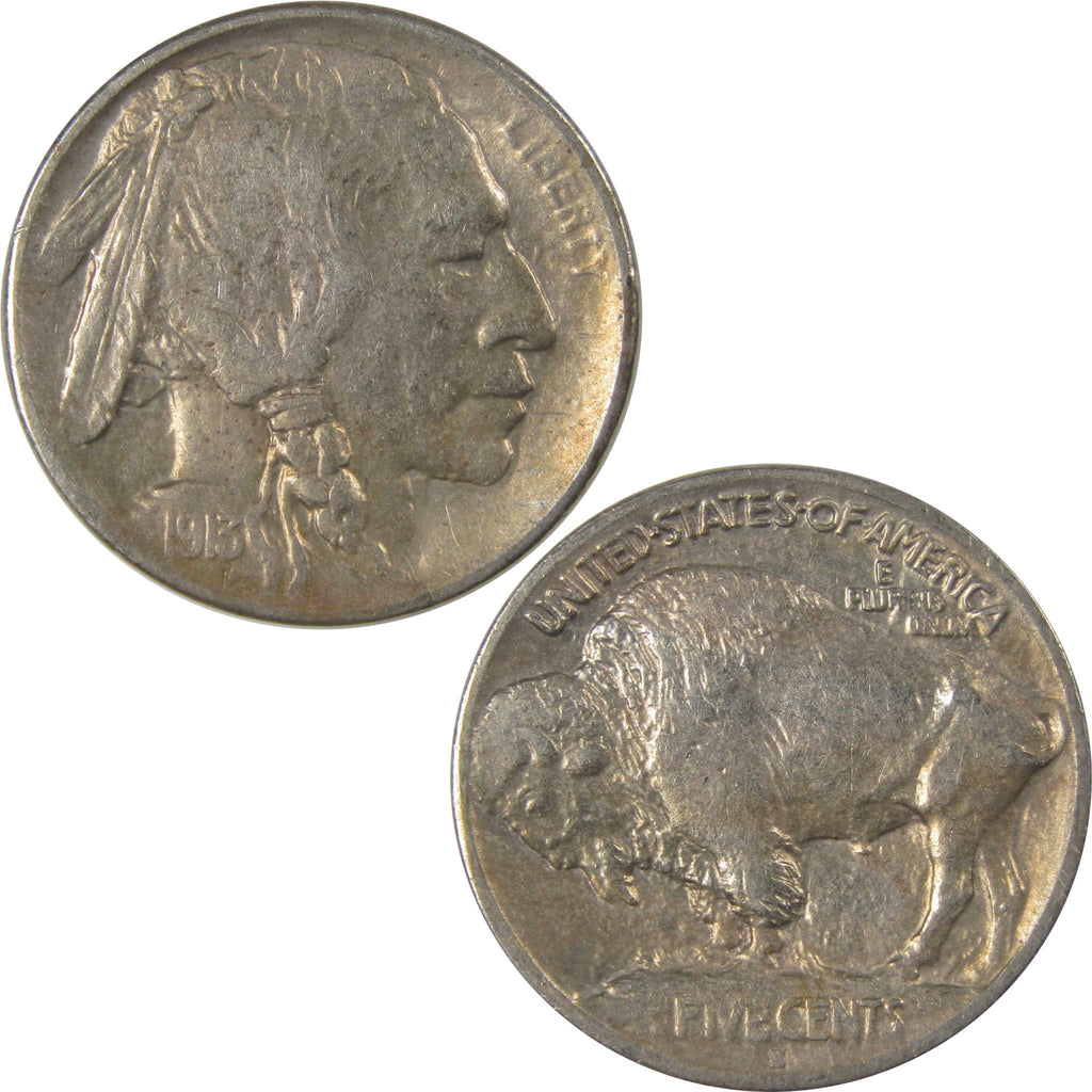 A genuine 1913 S Type 1 Indian Head Buffalo Nickel Coin, in XF EF Extremely Fine Details Condition. Cleaned