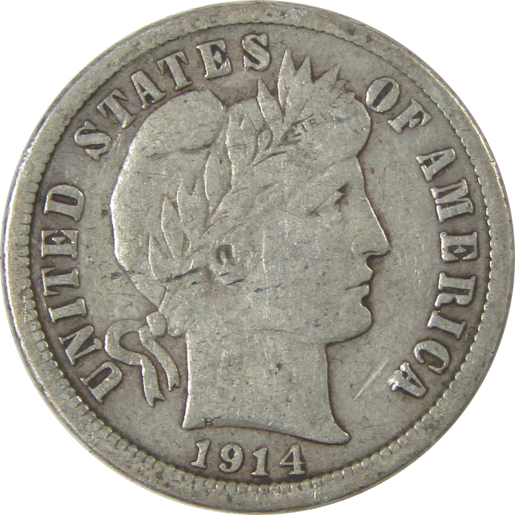 A genuine 1914 Barber Silver Dime Coin, in VF Very Fine Condition. Contains 90% Silver