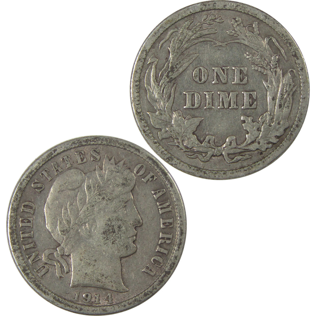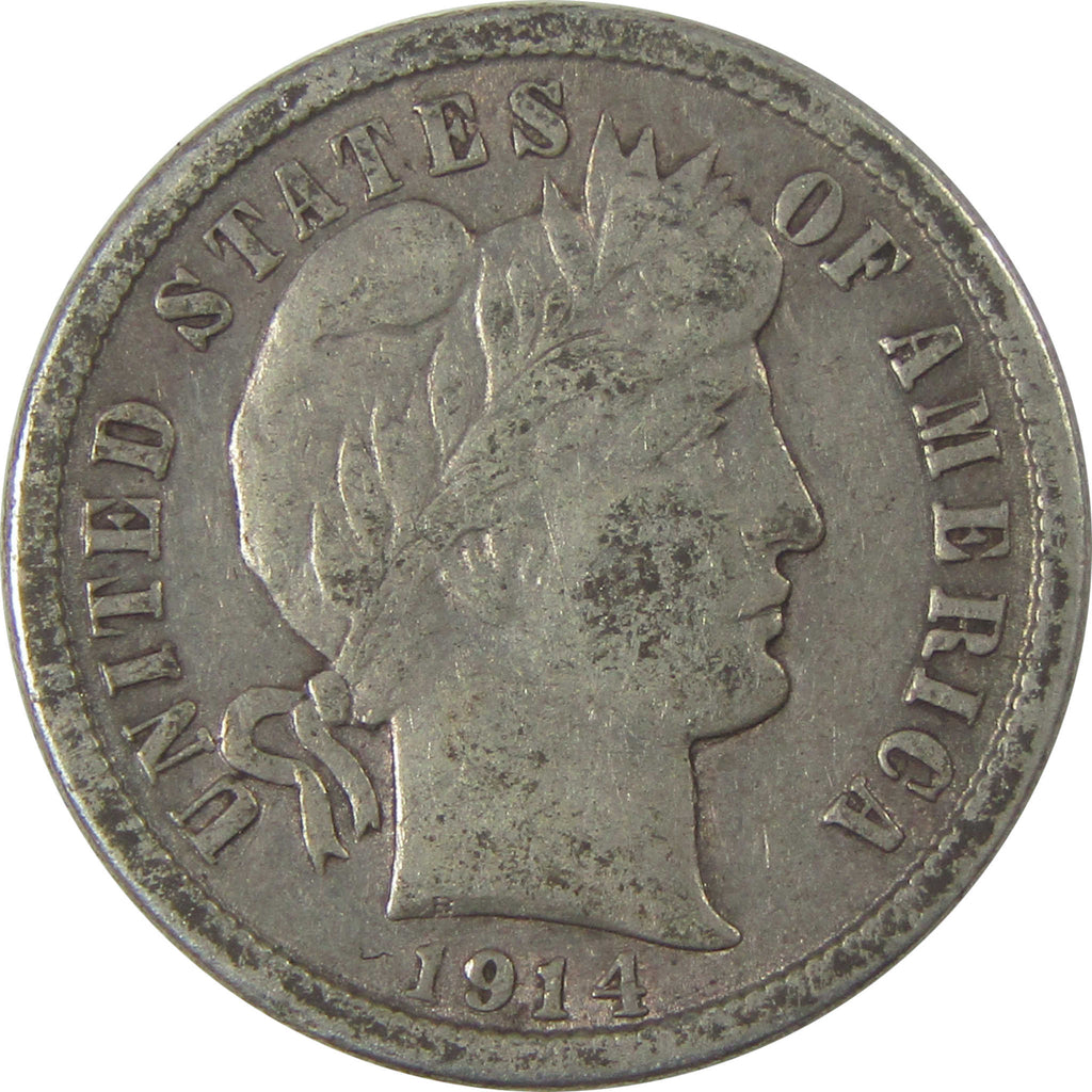 A genuine 1914 Barber Silver Dime Coin, in XF EF Extremely Fine Condition. Contains 90% Silver