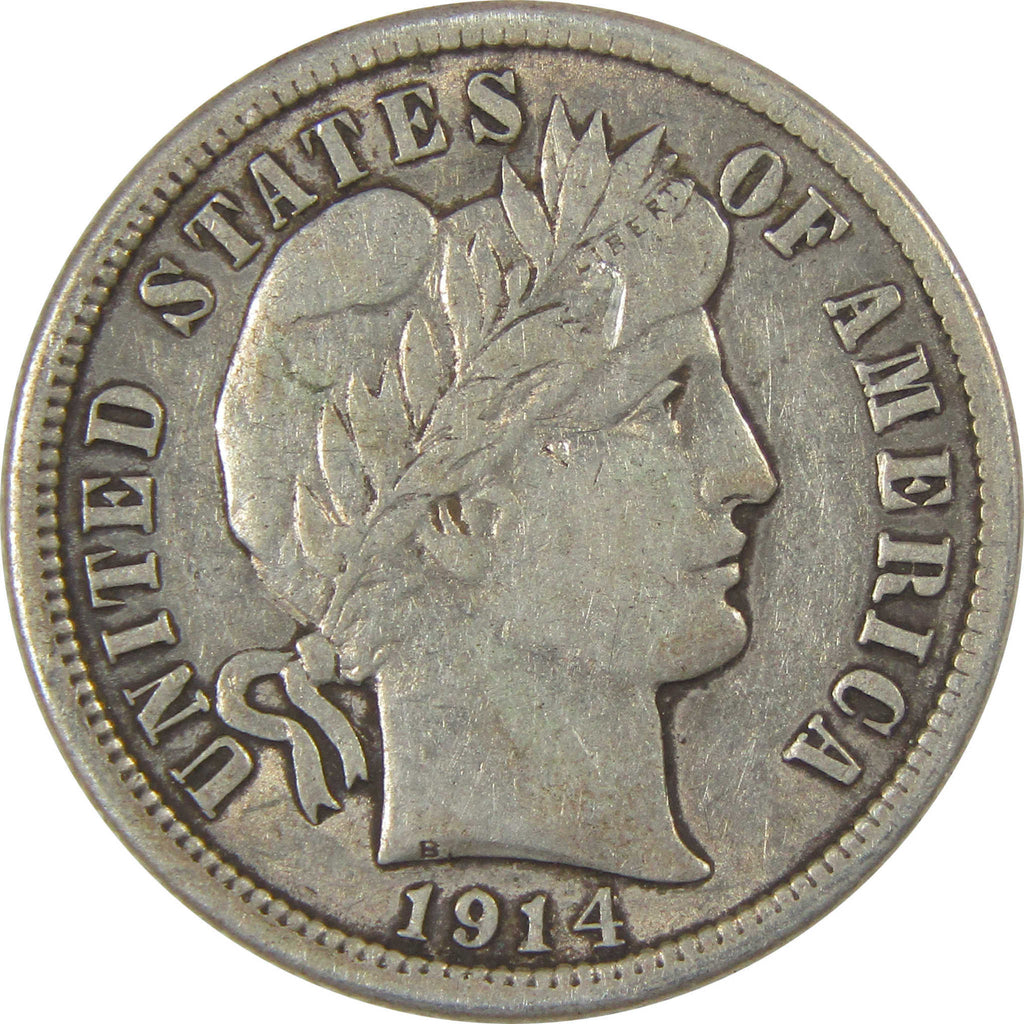 A genuine 1914 Barber Silver Dime Coin, in XF EF Extremely Fine Condition. Contains 90% Silver