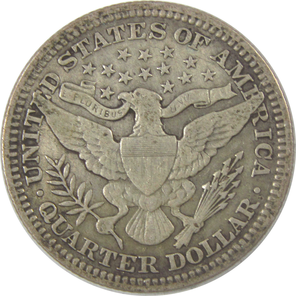 Designed by Charles E. Barber, this 90% silver Liberty Head quarter (or Barber quarter) depicts Liberty wearing a laurel wreath and Phrygian cap with a band inscribed LIBERTY. The reverse bears an adaptation of the Great Seal of the United States.
