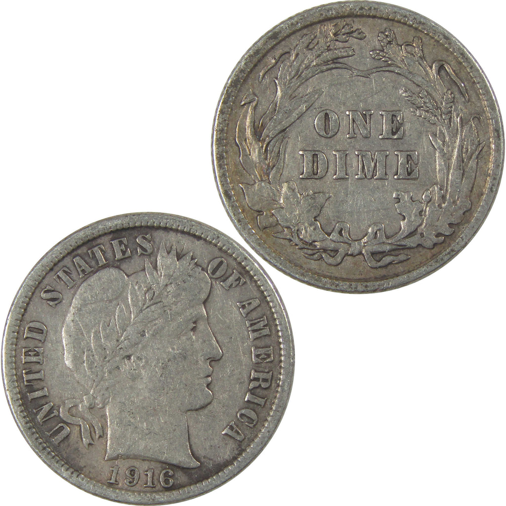 A genuine 1916 Barber Silver Dime Coin, in XF EF Extremely Fine Condition. Contains 90% Silver