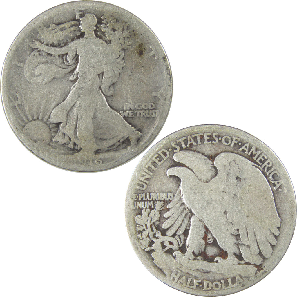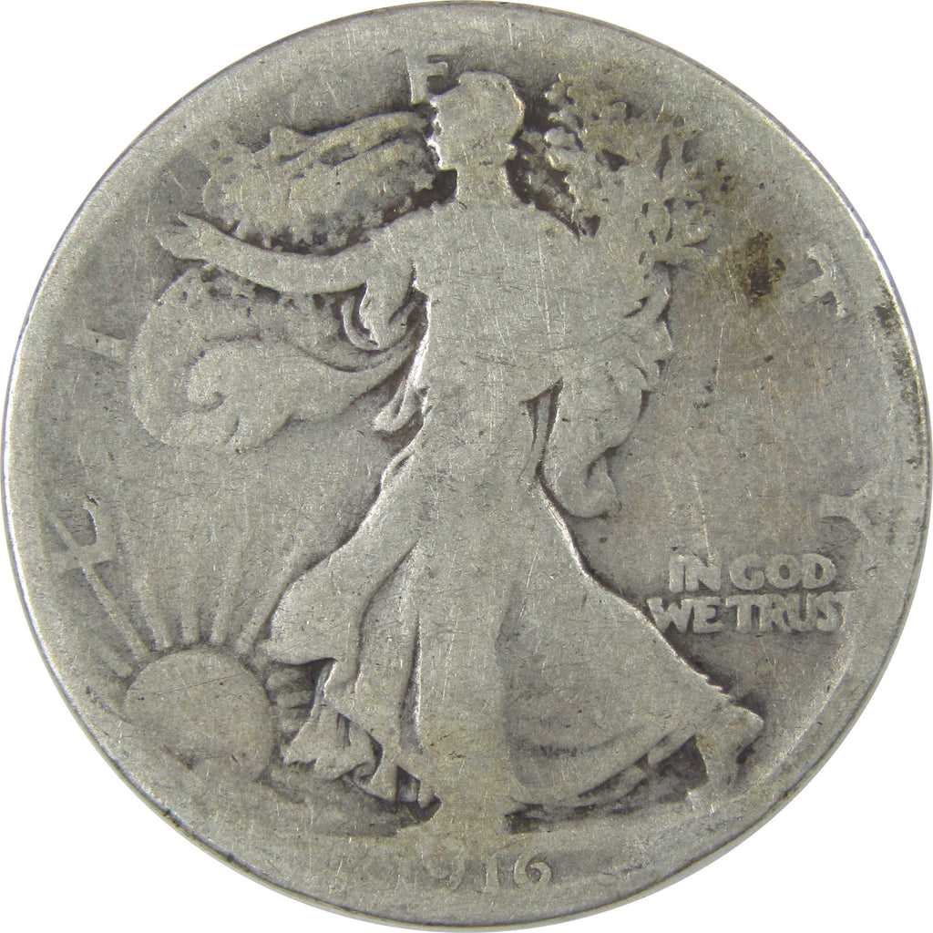 A genuine 1916 Liberty Walking Silver Half Dollar Coin, in G Good Condition. Contains 90% Silver
