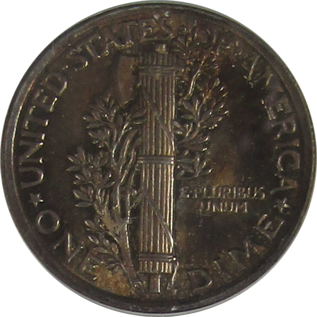 This 90% silver Mercury dime was designed by A.A. Weinman, who also created the Liberty Walking half dollars of 1916-1947. Its obverse features Liberty in a winged cap to symbolize freedom of thought. The reverse depicts a fasces against a branch in the background.