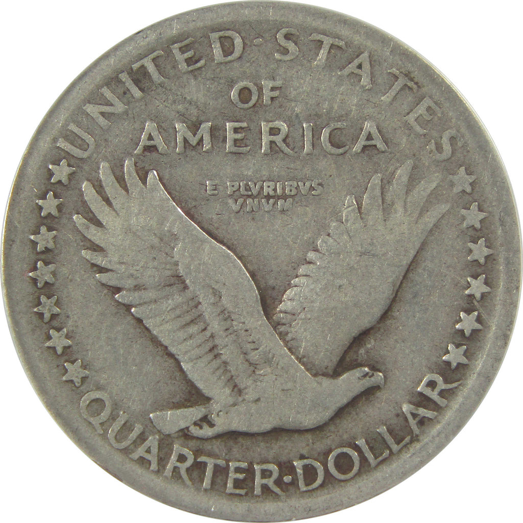Considered one of America's most beautiful coinage designs, this Standing Liberty quarter depicts Liberty standing in a gateway, holding an olive branch and uncovering a shield. The reverse features 13 stars surrounding a majestic eagle in flight.